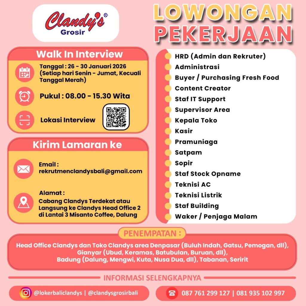 Share Posting terkaitInformasi dan lowongan kerja IDegree Indonesia by Woosong University, Korea Selatan.Baca selengkapnyaRapat Persiapan Survey Tahap 2 dan Tindak Lanjut Survey Tahap 1 Tracer Study Tahun 2024Baca selengkapnyaPenerima Bantuan Inovasi Wirausaha Digital Mahasiswa (IWDM) Tahun 2022Baca selengkapnyaPengumuman Pemenang PMW Undiksha Tahun 2022Baca selengkapnya